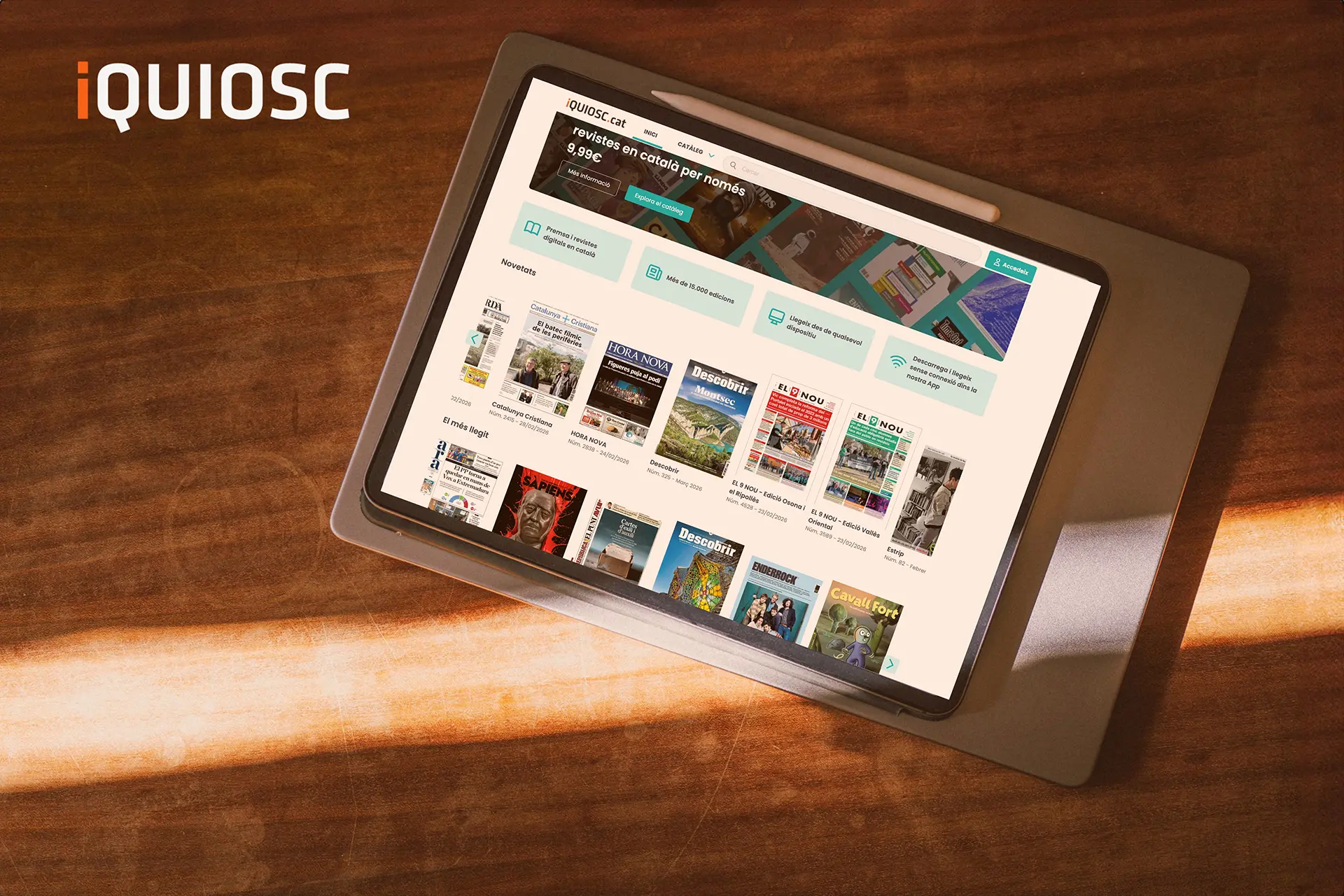 iQUIOSC.cat, la plataforma digital de APPEC, reuneix prop de 300 revistes, diaris i publicacions en català en un sol espai. Hi pots comprar exemplars digitals, subscriure’t per períodes o accedir a una tarifa plana per 9,99 € al mes.