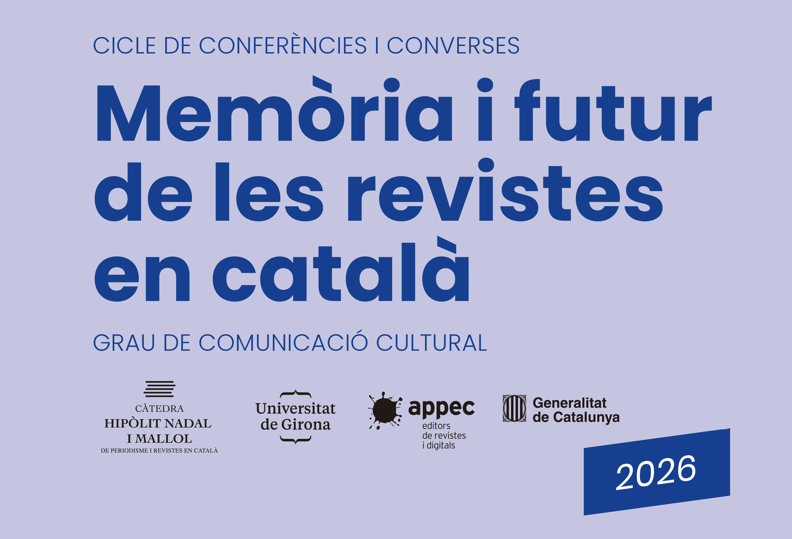 La Càtedra Hipòlit Nadal i Mallol de Periodisme i Revistes en Català, impulsada per l’APPEC i la Universitat de Girona, dona inici aquest 2026 al cicle “Memòria i futur de les revistes en català”, una iniciativa que vol analitzar el paper de la premsa especialitzada en la societat.
